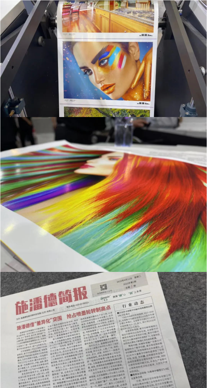 本次展會施潘德推出SPD-C440WD彩色輪轉(zhuǎn)噴墨印刷系統(tǒng),SPD-C440WD可實現(xiàn)銅版紙+新聞紙噴墨打印,高飽和度水性顏料墨水配合1200dpi×1200dpi超高打印精度,為最終實現(xiàn)高質(zhì)量打印提供了保障。與此同時,440mm的幅寬,能橫向擺放兩個A4的寬,加之定位精度誤差±0.2mm,高標準正背套準,SPD-C440WD為書刊品質(zhì)而生。