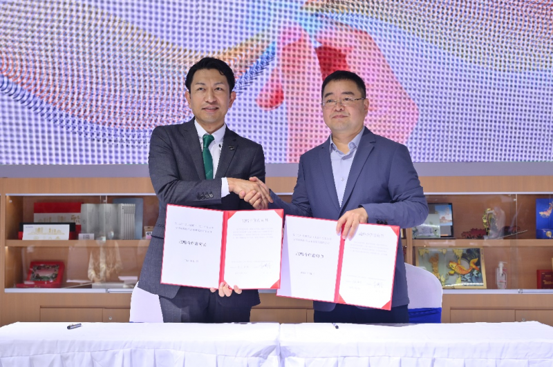 中國(guó)印刷科學(xué)技術(shù)研究院院長(zhǎng)趙鵬飛(右)與富士膠片商業(yè)創(chuàng)新東亞區(qū)圖形通信部總經(jīng)理大木雄次(左)簽約