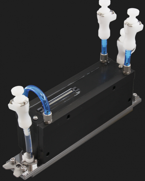 本次展會,京瓷展臺看點十足。首先,京瓷全新推出集合了“全新版本整片式壓電制動”、“直通噴嘴孔附近的輔助性循環(huán)流路”等技術(shù)的EX系列噴墨打印頭,該打印頭壓電制動器采用了京瓷全新版本的整片式壓電制動器,實現(xiàn)簡易安裝的同時打印更加精準;其次,EX系列打印頭將壓電制動器搭載在了高強度箱式框架結(jié)構(gòu)中,安全系數(shù)更高。最后,EX系列打印頭開發(fā)了直通噴嘴孔附近的輔助性循環(huán)流路,實現(xiàn)了真正意義上的循環(huán)頭!