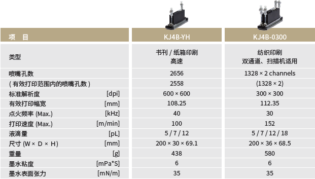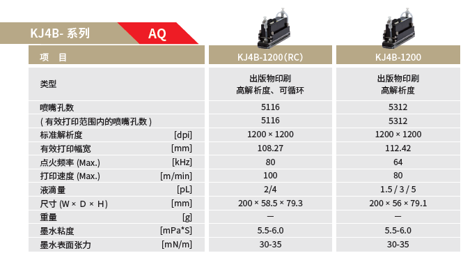 京瓷噴墨打印頭KJ4B(水性)系列規(guī)格