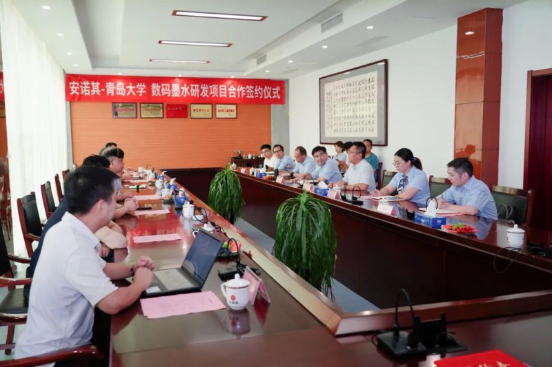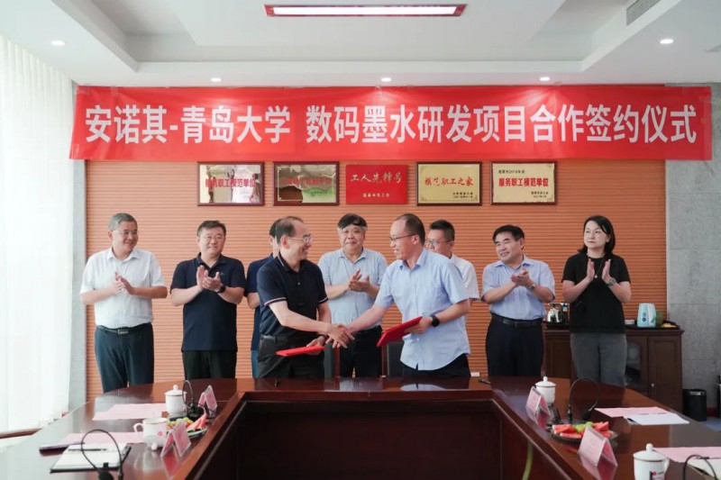 7月30日,安諾其與青島大學(xué)在煙臺安諾其簽署了“高效數(shù)碼墨水開發(fā)制備技術(shù)”合作協(xié)議,強化產(chǎn)學(xué)研深度合作,推動產(chǎn)業(yè)創(chuàng)新和升級。