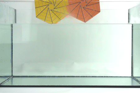 通過使用熱水對(duì)平板進(jìn)行加熱來觸發(fā)自折疊過程。在此過程中,具有抗收縮性的墨水發(fā)揮著關(guān)鍵作用,使材料自發(fā)折疊成復(fù)雜的折紙狀結(jié)構(gòu)。