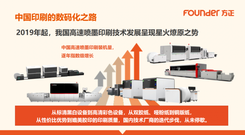 2019年起,高速噴墨印刷技術(shù)在我國的發(fā)展呈現(xiàn)星火燎原之勢,以方正電子為代表,大量的國產(chǎn)廠商登臺(tái)競技,行業(yè)開始蓬勃發(fā)展。