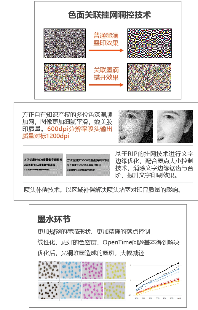 隨后,在從600dpi標(biāo)清噴墨向1200dpi高清噴墨演進(jìn)的過程中,方正電子集中技術(shù)資源和力量,與外部專家合作,協(xié)力突破文字邊緣、網(wǎng)點(diǎn)、機(jī)械傳動(dòng)等方面的技術(shù)瓶頸。目前,高清彩色噴墨印刷的打印質(zhì)量,已經(jīng)可以完全媲美傳統(tǒng)膠印的精品印刷。
