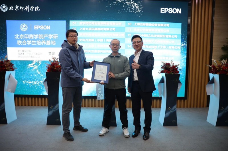 此次揭牌儀式中,愛普生商用及工業(yè)產(chǎn)品解決方案事業(yè)部總經(jīng)理王金城、部門經(jīng)理張鋒共同為參與北京印刷學(xué)院產(chǎn)學(xué)研聯(lián)合學(xué)生培養(yǎng)基地的北京神州數(shù)碼有限公司等17家合作伙伴頒發(fā)“北京印刷學(xué)院產(chǎn)學(xué)研學(xué)生培養(yǎng)基地”認證書,現(xiàn)場掌聲雷動,氛圍熱烈。