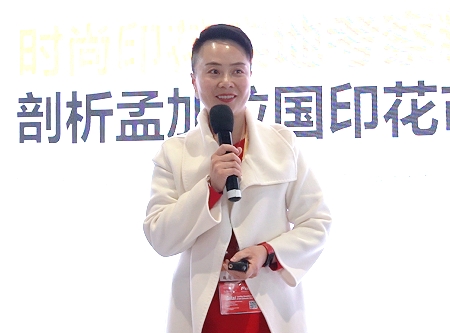 作為重要的紡織品生產(chǎn)國,近年來孟加拉國在數(shù)碼印花領(lǐng)域已經(jīng)展現(xiàn)出巨大的發(fā)展?jié)摿?。今年年初,時尚印花團(tuán)隊就帶領(lǐng)眾多行業(yè)同仁前往孟加拉國,在當(dāng)?shù)赝诰驍?shù)碼印花行業(yè)的新機(jī)遇。在論壇現(xiàn)場,時尚印花創(chuàng)始人春霞就為論壇觀眾帶來了有關(guān)《實地考察精華總結(jié),剖析孟加拉國印花市場新機(jī)遇》的主題演講。通過對當(dāng)?shù)厣a(chǎn)成本、市場特點等多個方面的分析總結(jié),盡可能詳盡地剖析孟加拉國數(shù)碼印花發(fā)展所面臨的機(jī)遇與挑戰(zhàn)。