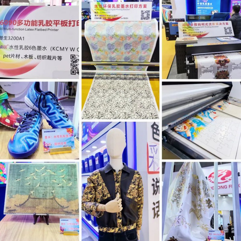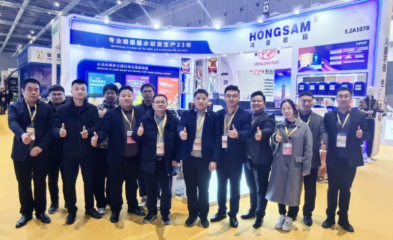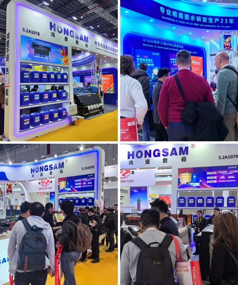 本次展會(huì),鴻盛數(shù)碼展示了水性乳膠環(huán)保墨水打印方案、旗下全系列墨水(數(shù)碼印花系列:捷特絲紡織涂料墨水、鴻美分散染料墨水、銳美活性染料墨水、絲美特酸性染料墨水、鴻盛陽離子染料墨水,數(shù)碼影像系列:鴻彩6納米顏料墨水、EverNew高耐光染料墨水,數(shù)碼印刷系列:瓦楞紙/膠版紙/木紋紙/銅版紙專用墨水)、鴻捷全數(shù)碼柯氏燙畫解決方案,涵蓋了墨水、設(shè)備及打印方案,吸引了眾多觀眾駐足了解!
