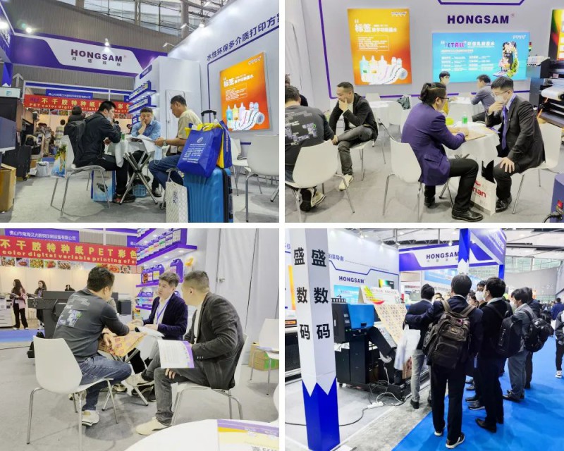 鴻盛數(shù)碼深耕噴墨行業(yè)23載,在本次展會(huì)上展出的有數(shù)字印刷類(lèi)墨水:水性環(huán)保標(biāo)簽?zāi)?、瓦楞紙顏?染料墨水、書(shū)刊專(zhuān)用顏料墨水、木紋紙專(zhuān)用顏料墨水、銅版紙噴墨印刷墨水,水性環(huán)保乳膠墨水打印方案,鴻捷MP804L軟膜包裝、紙張印刷多功能數(shù)碼打樣機(jī),不僅有數(shù)字印刷類(lèi)墨水,還有打印設(shè)備及解決方案,吸引了眾多行業(yè)內(nèi)外人士的關(guān)注和駐足!