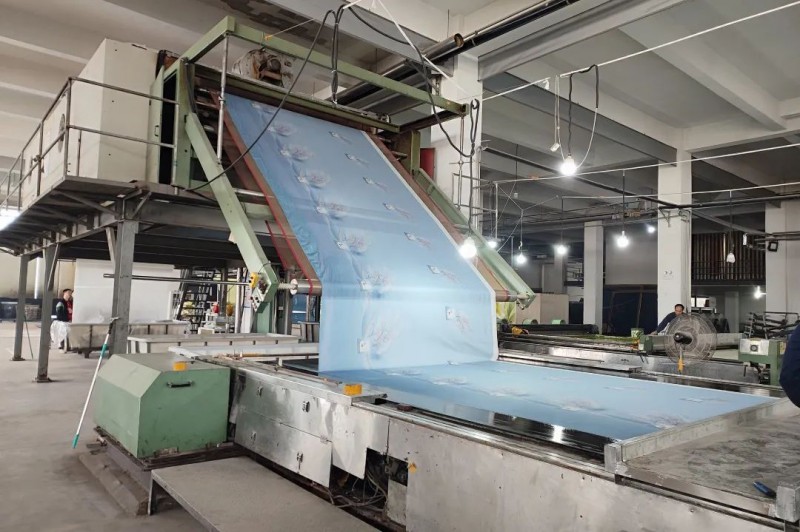 州際數(shù)碼海安工廠目前共有9臺弘美48頭機和3臺宏華平網(wǎng)+數(shù)碼印花機。據(jù)李廠長介紹,海安工廠的訂單一如既往非常充足,新年開工后不到一個月,就已經(jīng)做了一百多萬米的訂單。而且生產(chǎn)速度非??欤啃r可達近1000米,同樣加工一萬米的貨,他們的工人團隊往往比傳統(tǒng)平網(wǎng)印花生產(chǎn)線還要快。