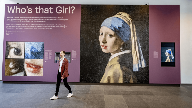 隨后,佳能印刷公司利用其最先進的技術,制作了一幅高達13英尺的巨大印刷畫,放大了約100倍。這使參觀者能夠近距離觀賞維米爾的杰作,并深入細致地欣賞其錯綜復雜的細節(jié)。此外,觀眾還可以觸摸和感受到這幅印刷品的立體效果,從而獲得對繪畫的全新體驗。通過更大放大特定細節(jié),如標志性的珍珠耳環(huán)和女孩迷人的眼睛,觀眾可以更清晰地欣賞維米爾細致的筆觸和顏料顆粒。