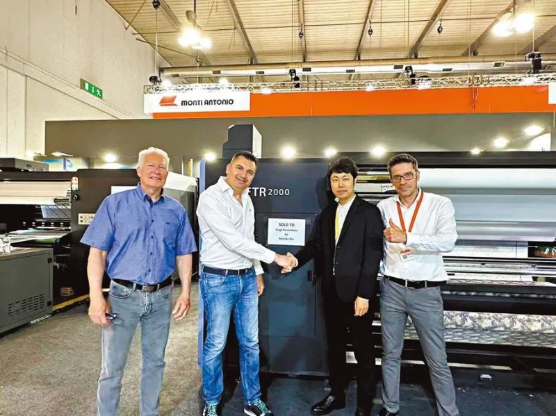 “今年,這些歐洲客戶都在逐步把他們原來的單面數(shù)碼印花的工藝設備淘汰掉,轉為使用我們的雙面數(shù)碼印花設備,他們都是在行業(yè)上有很大話語權的知名廠商。”王輝同時透露,“不久后,大家就將在巴黎奧運會期間看到使用我們設備生產出的旗幟等雙面直噴紡織品。”