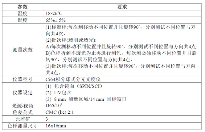 3)色卡的顏色應(yīng)按照GB/T 3979-2008 中規(guī)定的“光譜光度測(cè)色法”進(jìn)行測(cè)量,按GB/T 8424.3 中規(guī)定的方法進(jìn)行色差計(jì)算。