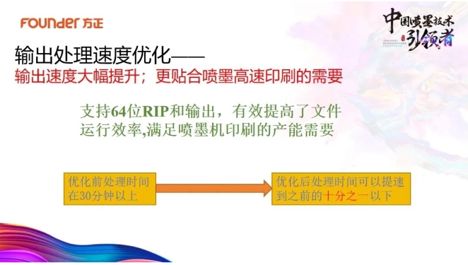 方正暢流數(shù)字化生產(chǎn)流程,可以通過(guò)構(gòu)建印前、印刷、印后一體化的全數(shù)字生產(chǎn)工作流程,幫助印企提高數(shù)字文件處理效率。方正暢流V7.0(噴墨版)是今年針對(duì)“噴墨生產(chǎn)需求”推出的專用版本,更貼合噴墨生成高速印刷的需要,能夠滿足1200dpi高速噴墨印刷品質(zhì)及性能要求。