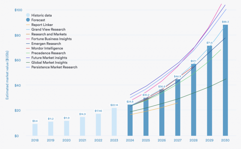 據(jù) Protolabs 稱,3D 打印領(lǐng)域的增長(zhǎng)速度比預(yù)期快 10.5%。據(jù)報(bào)道,市場(chǎng)規(guī)模以 21% 的復(fù)合年增長(zhǎng)率增長(zhǎng)至 2024 年的 248 億美元,預(yù)計(jì)到 2028 年底將達(dá)到 571 億美元。