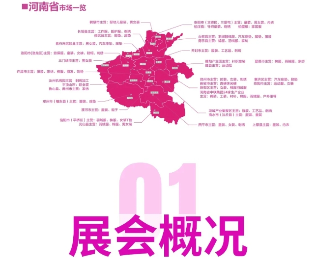河南省已經(jīng)形成了包括紡紗、化纖、織布、染整、服裝、家紡、紡織機械制造等行業(yè)在內(nèi)的較為完整的紡織工業(yè)產(chǎn)業(yè)鏈體系,成為全國紡織服裝制造大省和中部重要的紡織服裝產(chǎn)業(yè)轉(zhuǎn)移承接地。河南各地形成了各具特色的服裝產(chǎn)業(yè)集群,培育了南陽、商丘、周口、鄭州、安陽、新鄉(xiāng)、信陽、平頂山等紡織服裝產(chǎn)業(yè)集群;形成了鄭州女褲,安陽、睢陽嬰幼兒針織童裝,新鄉(xiāng)、項城、長垣職業(yè)裝,光出、臺前羽絨服,鎮(zhèn)平毛衫,穰東褲裝等傳統(tǒng)特色服裝產(chǎn)業(yè)集群,以及周口、商丘、信陽、淇縣、西平等轉(zhuǎn)移集聚式品牌服裝加工產(chǎn)業(yè)集群。