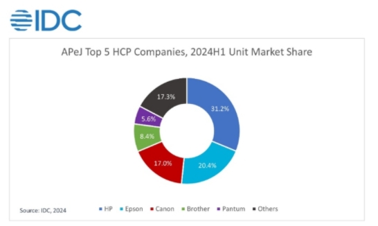 2024年上半年,惠普穩(wěn)居亞太區(qū)出貨量首位,但噴墨打印機(jī)和激光打印機(jī)出貨量仍有下降,為13.5%;愛(ài)普生出貨量約為250萬(wàn)臺(tái),同比下降9.8%;佳能出貨量約下降21.8%,但激光業(yè)務(wù)增長(zhǎng)6.4%。