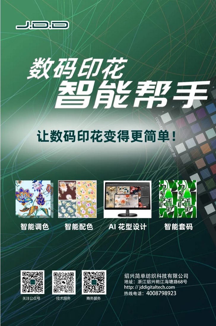 本次展會(huì)鴻盛數(shù)碼還將攜手簡單數(shù)碼,為大家呈現(xiàn)更加智能的數(shù)碼印花技術(shù)。簡單數(shù)碼J.D.D數(shù)碼印花智能輔助軟件是專為數(shù)碼印花設(shè)計(jì)的智能化工具,以Photoshop插件形式,通過人工智能技術(shù)提供花型調(diào)色,配色,花型設(shè)計(jì)、色彩管理、自動(dòng)套版等多種功能,提升印花效率和效果。