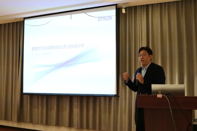 在技術(shù)分享環(huán)節(jié),愛(ài)普生(中國(guó))有限公司噴墨解決方案事業(yè)部銷售技術(shù)和新應(yīng)用開(kāi)發(fā)部總監(jiān)高岳先生詳細(xì)介紹了愛(ài)普生在數(shù)碼印花領(lǐng)域的最新技術(shù)進(jìn)展,并強(qiáng)調(diào)了打印頭技術(shù)在提升印花精度和效率方面的重要作用。