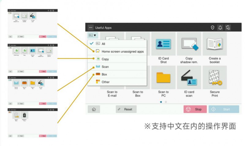 更令人稱道的是,該系列全面升級自定義功能,讓用戶能夠像定制手機界面一樣,自由調(diào)整功能布局,根據(jù)個人偏好和工作需求設置個性化界面,輕松地將常用功能置于主屏幕,實現(xiàn)快速訪問。此外,該系列新品還開創(chuàng)性地融入了類似 Android 手機的小部件功能,使用者能直接在主屏幕上嵌入應用程序功能,由此進一步簡化操作步驟,大幅提升使用的便捷性。