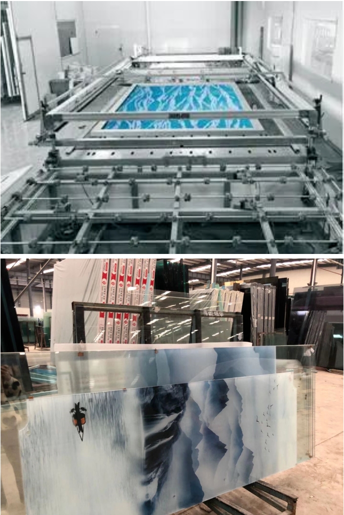 絲網(wǎng)印刷彩釉玻璃是利用絲網(wǎng)印刷工藝將玻璃油墨印刷在玻璃表面然后進(jìn)行烘干或者烘干后鋼化將油墨固化或者燒結(jié)在玻璃表面形成彩釉玻璃