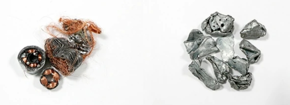 從 MFD 收集的含銅鋼(左)和精煉至純度 99% 的鋼(右)