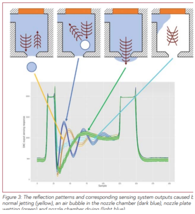 這種創(chuàng)新的傳感系統(tǒng)消除了人工檢查的需要,使噴頭維護更加高效。通過依靠噴嘴發(fā)出的物理信號,而不是對打印產品進行光學檢測,該系統(tǒng)能夠不受打印模式和墨水顏色的影響,甚至可以對透明墨水進行錯誤檢測。