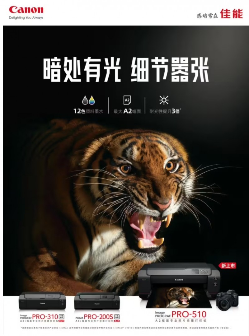 佳能近日推出全新一代PRO系列專業(yè)影像輸出解決方案,重磅發(fā)布三款針對不同場景的專業(yè)級打印機:支持A2幅面輸出的imagePROGRAF PRO-510、A3+幅面機型PRO-310以及PIXMA PRO-200S。該系列以突破性技術創(chuàng)新直擊專業(yè)影像工作室、藝術收藏機構和攝影創(chuàng)作者的三大核心需求——從商業(yè)影像輸出到藝術典藏制作,從高校教學到科研實驗,全方位構建專業(yè)影像輸出新標準。
