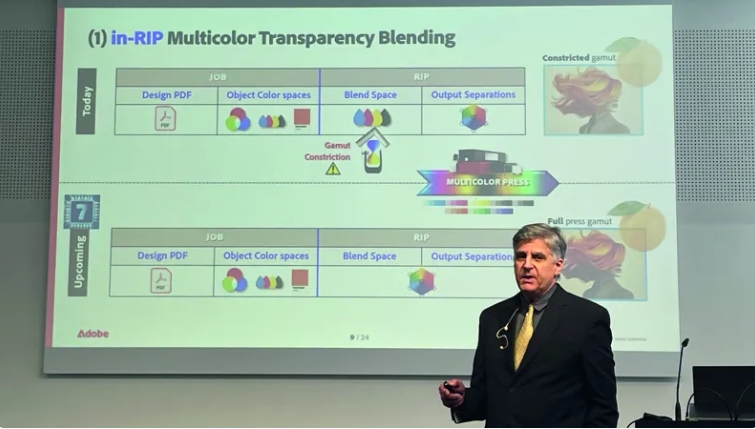 Adobe 高級產(chǎn)品經(jīng)理 Mark Lewiecki 告訴《Printweek》:“我認為透明度混合功能對于任何擁有六色印刷機并正在打印復雜、豐富圖形的人來說,都會立即受益。我想說,幾乎所有 OEM 渠道合作伙伴都對這項功能非常感興趣。”