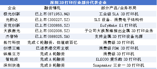 完整產(chǎn)業(yè)鏈凸顯產(chǎn)業(yè)集群效應。深圳已初步形成從建模軟件、金屬粉末到設備制造的完整鏈條。上游有光華偉業(yè)研發(fā)生物材料,中游有大族激光布局金屬3D打印設備,下游有光韻達提供航空航天零部件解決方案。依托初步形成的完整產(chǎn)鏈鏈,深圳在3D打印市場能夠快速做出反應,能夠在消費級、入門級應用場景迅速占據(jù)全球市場主導地位,主要得益于完整產(chǎn)業(yè)鏈的集群效應。