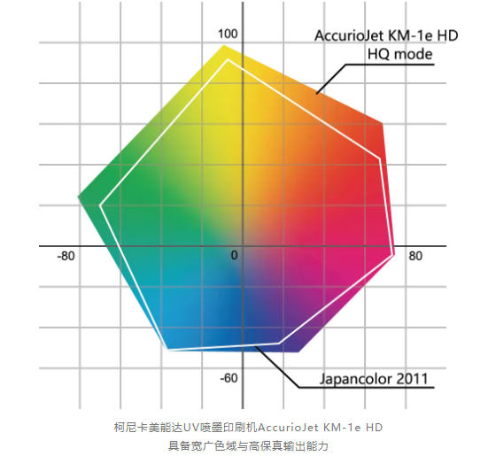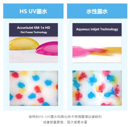AccurioJet KM-1e HD采用了獨(dú)特的HS-UV墨水與固化系統(tǒng),憑借其墨滴瞬凝技術(shù),使得墨滴邊緣銳利,成像質(zhì)量更高,層次感更豐富,可在多種材質(zhì)上均可實(shí)現(xiàn)高質(zhì)量印刷。