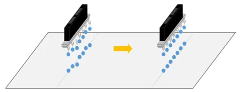 不過,作為工業(yè)級打印頭,京瓷針對這種微小的差異,已經(jīng)研發(fā)出改善對策。通過高性能壓電片與波形的搭配,在保持完整墨滴的前提下,盡可能提高墨滴吐出時的初速度,利用墨滴的高飛行速度來彌補噴嘴之間微小的個體差異。高速吐出速度的效果如下圖所示。