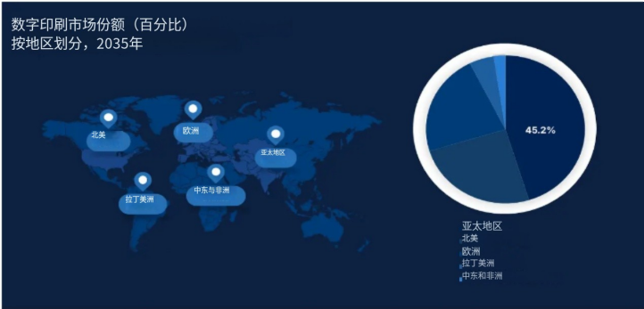 預(yù)計(jì)到 2035 年,亞太地區(qū)在數(shù)字印刷市場(chǎng)將占據(jù) 45.2% 的份額,這主要得益于國(guó)內(nèi)消費(fèi)的增長(zhǎng)、產(chǎn)業(yè)改革以及電子商務(wù)活動(dòng)的加速發(fā)展。