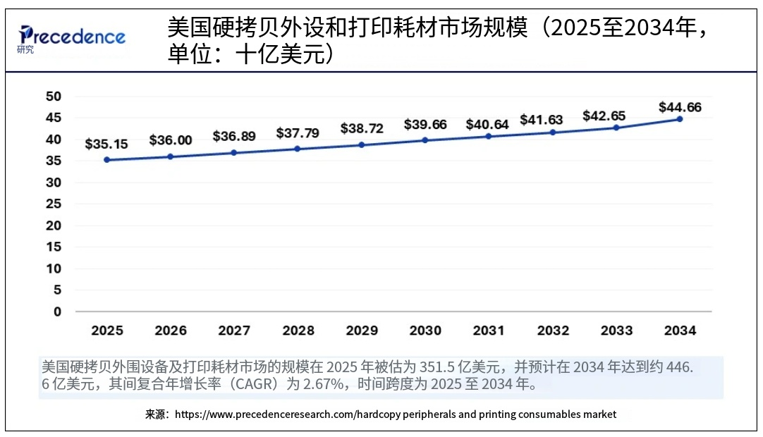 美國硬拷貝外圍設(shè)備和打印耗材市場規(guī)模及增長(2025年至2034年)