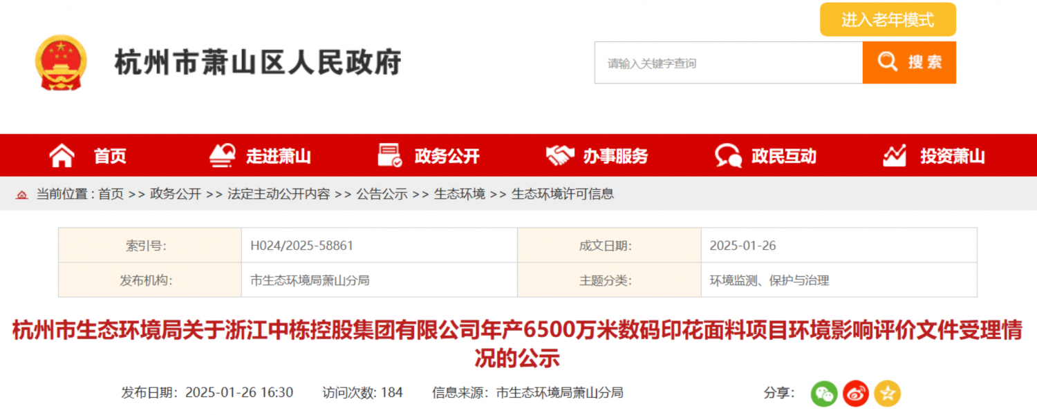 近日,浙江中棟控股集團有限公司年產(chǎn)6500萬米數(shù)碼印花面料擴建項目正式推進,該項目總投資3.8億元,選址于浙江省杭州市蕭山區(qū)衙前鎮(zhèn)衙前路269號,依托蕭山區(qū)存量工業(yè)用地有機更新政策支持,聚焦數(shù)碼印花面料產(chǎn)能升級,助力區(qū)域紡織產(chǎn)業(yè)數(shù)字化、綠色化轉型,進一步夯實衙前鎮(zhèn)紡織印染產(chǎn)業(yè)集群優(yōu)勢。