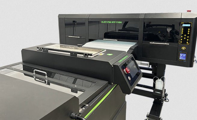 作為整個工作流程的核心,R?Jet PRO DTF™ V9HG工業(yè)級DTF打印機(jī)專為嚴(yán)苛的規(guī)?;a(chǎn)環(huán)境量身打造,其性能直接決定了印花的品質(zhì)與效率。該設(shè)備配備九色油墨系統(tǒng),涵蓋CMYK基礎(chǔ)色以及橙色、紅色、綠色、藍(lán)色和白色,能夠精準(zhǔn)還原Pantone色卡標(biāo)準(zhǔn),滿足終端市場對高色彩飽和度、高還原度的需求,適配服裝、文創(chuàng)等多領(lǐng)域的印花需求。同時,V9HG具備每小時40米的高速打印能力,搭配內(nèi)置自動化與氣動介質(zhì)處理功能,有效減少操作員在長時間生產(chǎn)中的工作量與疲勞感,避免人工操作失誤帶來的質(zhì)量波動,為規(guī)模化生產(chǎn)奠定基礎(chǔ)。