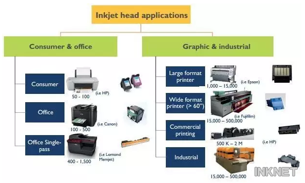 噴墨打印應(yīng)用領(lǐng)域及噴墨打印機(jī)價(jià)格(單位:US$)
